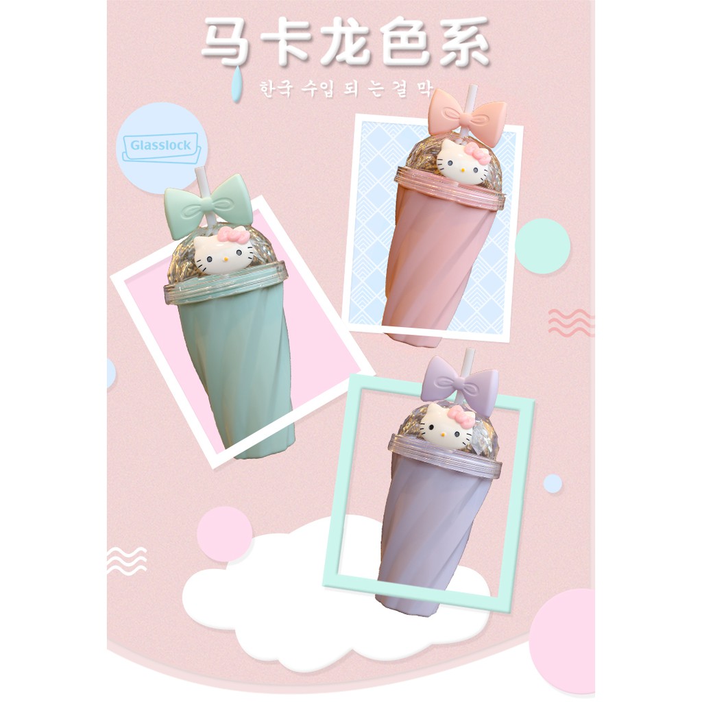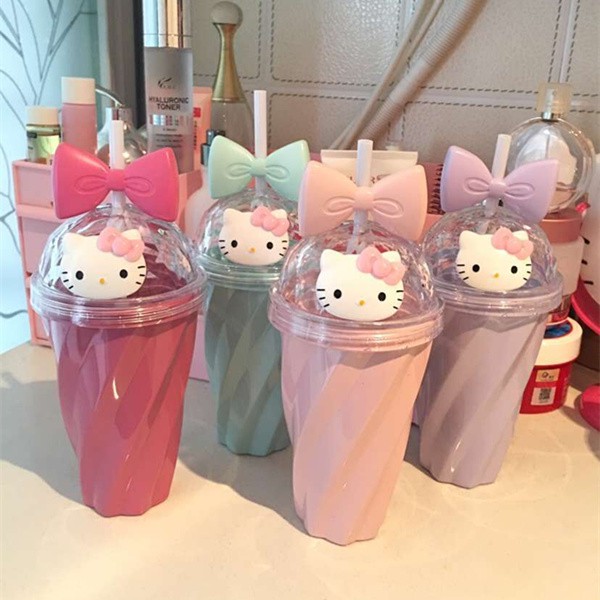 Bình nước có ống hút hình Hello Kitty xinh xắn free ship